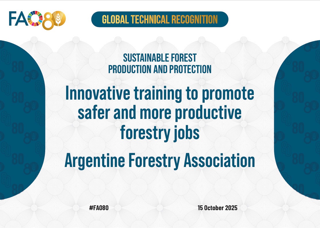 Este galardón internacional distingue proyectos innovadores que promueven el trabajo decente, la seguridad laboral y la sostenibilidad en el manejo de la actividad forestal. En ese marco, la Asociación Forestal Argentina (AFoA) fue seleccionada por la implementación del Sistema de Certificación de Competencias Laborales aplicado al sector Forestal, reconocido por su impacto en la profesionalización del sector, la mejora de las condiciones de seguridad en el trabajo y el fortalecimiento del diálogo social entre empresas, trabajadores y el Estado.